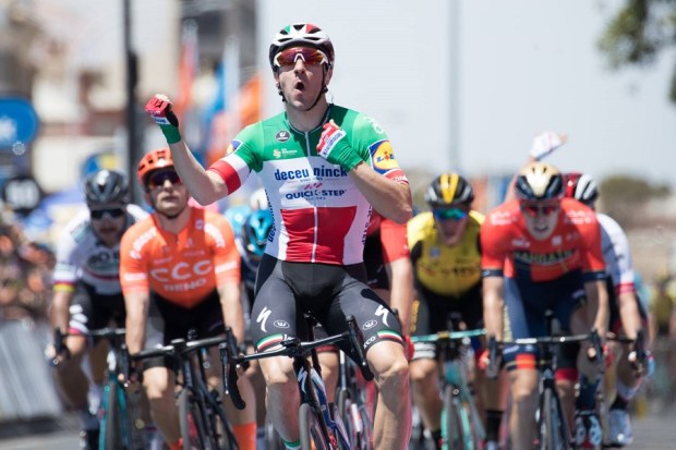 El campeón italiano del renombrado Deceunink-Quick Step se lleva la primera etapa del Tour Down Under.