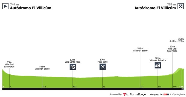 La penúltima etapa vivirá un recorrido de hasta 153Km con salida y llegada en el Autódromo El Villicúm. Una jornada prácticamente llana, pero que reservará la victoria para aquellos hombres veloces y que sean capaces de sobrepasar las cuestas, concretamente la última tachuela de 4Km al 2% que se corona a un kilómetro del final.