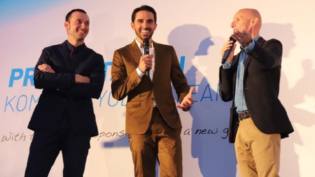 Alberto Contador habló con los compañeros de As durante la presentación del Kometa Cycling Team.