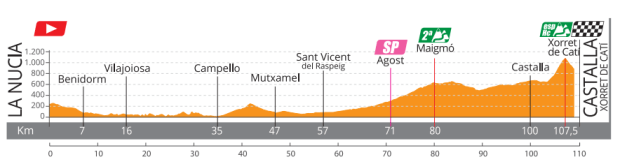 La tercera entrega de la ronda valenciana será bastante decisiva en la clasificación general. Una etapa que, tras ascender un puerto de segunda categoría, vivirá su final en Xorret de Catí, catalogado de categoría especial. Eso sí, Xorret de Catí no será final de etapa, pues una vez coronado se deberá descender durante dos kilómetros y medio.