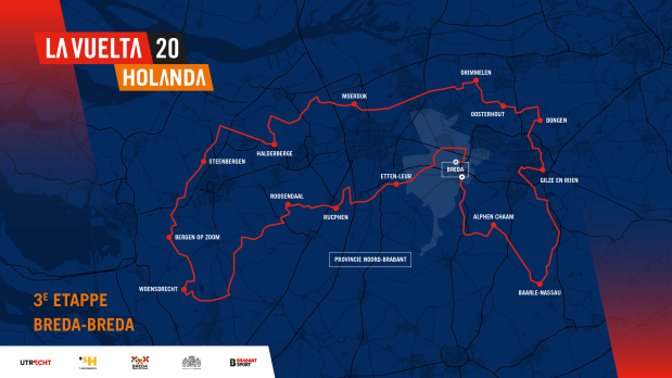 La última etapa en territorio holandés estará marcada por el paisaje del Brabante Occidental. El domingo la salida se dará en el histórico castillo de Breda, desde donde el pelotón recorrerá la provincia. A su paso, los ciclistas estarán acompañados por la Brabantse Wal, característica del Brabante Occidental. Los corredores rodarán por la cuna del ciclismo en Holanda: St. Willebord, Alphen Chaam y Hoogerheide (conocido por las competiciones de ciclocrós). 194 kilómetros después, el pelotón regresará a Breda para los últimos metros de carrera en Holanda. La meta estará situada frente al cine Chassé, donde se jugará el triunfo de la tercera etapa.