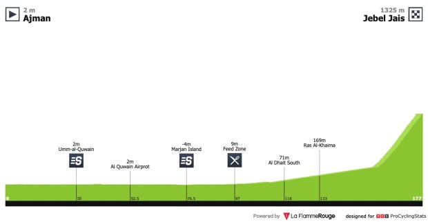 Jebel Jais será la última ascensión de este UAE Tour y, por tanto, la última oportunidad para definir la clasificación general. Una jornada con 180Km y donde solamente se deberá ascender este puerto que, además, será final de etapa.