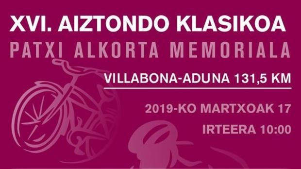 La edición 2019 de la Aiztondo Klasika, que contará con 131 kilómetros con salida en Villabona y llegada en Aduna, está llamada a ser una prueba nerviosa e impredecible, donde el trascurso de la prueba, el transito por las estrechas y sinuosas carreteras del Valle de Aiztondo y la subida al Alto de Alkiza y las cinco ascensiones al Alto de Aduna irán provocando que emerjan los ciclistas más fuertes del pelotón. Y más en una jornada en la que se prevé que la lluvia haga acto de presencia.