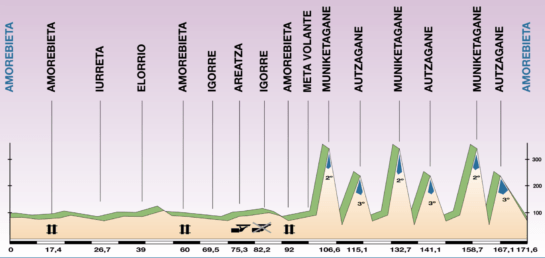 El recorrido de la prueba vizcaína contará con un total de 171,6 km y presentará algunos cambios en su forma con respecto a la última edición. Una vez concluidas las obras de Autzagane, la carrera vuelve al trazado habitual, por lo que se repetirá el circuito final que se había utilizado hasta 2013. Así, el pelotón tendrá que afrontar en tres ocasiones las ascensiones a Montecalvo y Autzagane con paso por el centro de Amorebieta.