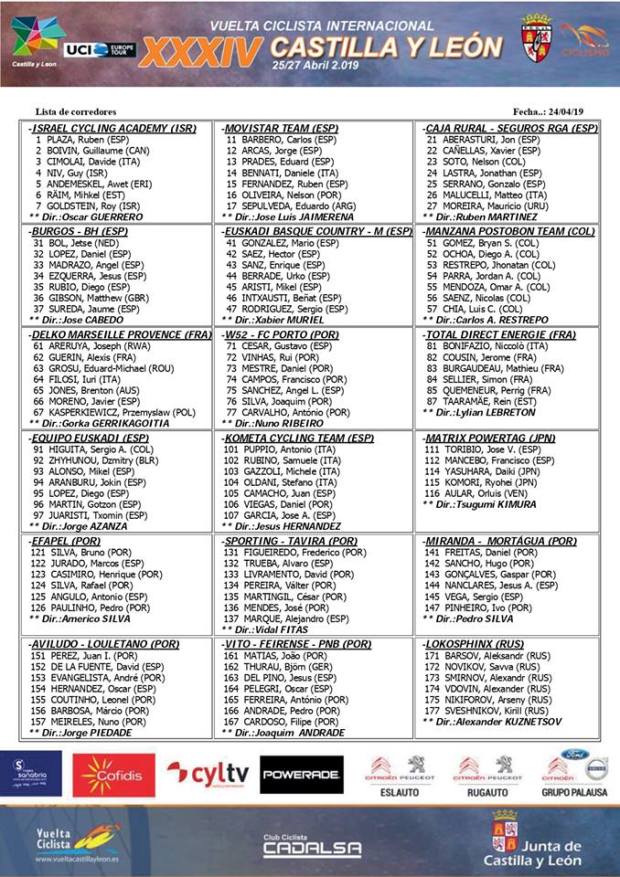 Mientras tanto, el único equipo World Tour presente en la Vuelta a Castilla y León, Movistar Team tendrá un siete compuesto por: Edu Prades, Carlos Barbero, Rubén Fernández, Nelson Oliveira, Eduardo Sepúlveda, Daniele Bennati y Jorge Arcas.