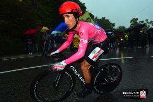Valerio Conti: «Como estaba previsto, no asumí ningún riesgo, especialmente con este clima increíblemente malo. Corrí toda la contrarreloj bajo la lluvia torrencial. Fue difícil de ver, traté de mantener el enfoque y empujar con fuerza en la subida. Mi objetivo era retener el jersey rosa y lo logré; Hice esa promesa a mis compañeros de equipo. Pasaremos el día de descanso en rosa, lo que es genial«.