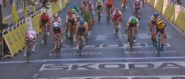 Cuando faltaban 12 kilómetros, fue echada la escapada con Team Dimension Data liderando el pelotón intentando buscar con Boasson Hagen un positivo desenlace a un oscuro Tour para ellos. Michael Matthews tuvo que quedarse atrás en consecuencia de haberse roto los cambios y si quería luchar por la victoria de etapa, tenía que remontar y mucho ante el duro ritmo que estaba poniendo Deceunick Quick Step a unos 60km/h.