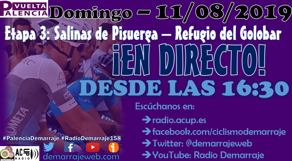 El domingo se vivirá la jornada llamada a ser la más grande de esta Vuelta a Palencia. La carrera partirá desde Salinas de Pisuerga y recorrerá 99Km donde puede pasar de todo. En la primera parte del día se ascenderán el Alto de Valle de Santullán (3º categoría con 5,1Km al 3,9%) y el Collado de Salcedillo (2º categoría con 6,3Km al 5%). Además, en el final de la etapa se encadenarán hasta tres puertos comenzando por el Alto El Bardal (2º categoría con 3,6Km al 4,9%), se continuará a través del Collado de Orbó (2º categoría con 2,9Km al 4,9%) y se finalizará en el Refugio del Golobar (categoría especial con 12,6Km al 5,8%). Una jornada donde sabremos quien, con casi total seguridad, consigue la Vuelta a Palencia.