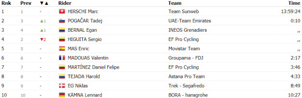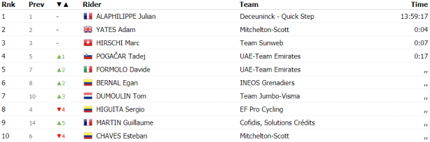 En el gran grupo era Deceuninck – Quick Step quién marcaba el ritmo protegiendo el amarillo de Alaphilippe y las opciones en la llegada a Sisteron de Sam Bennett. La diferencia con la fuga alcanzó una máxima de tres minutos, aunque, en gran parte de la etapa, se mantuvo en torno a los dos minutos.
