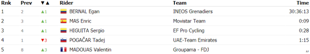 Finalmente en el sprint Wout Van Aert se llevaba la victoria por delante de Boasson Hagen y Coquard. Por su parte, el grupo con Mikel Landa y Tadej Pogacar llegó a 1:21 del resto de favoritos para el Tour de Francia.