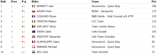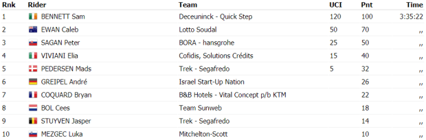Finalmente, en el sprint acabaría ganando Sam Bennett por delante de Caleb Ewan y Peter Sagan. Entre los favoritos finalmente no hubo diferencias.