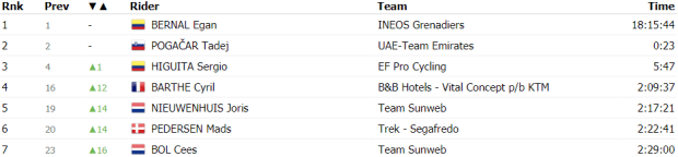 En el kilómetro 65 de la etapa comenzaban los abanicos con el equipo Deceuninck como protagonista. Una situación que iba a terminar por cazar a los dos fugados. A la vez que se producía esa neutralización, en el seno del pelotón se producía una caída con Nicholas Roche o Neilson Powless entre los implicados. Entre la caída y los abanicos íbamos a ver al pelotón cortado en varios trozos sin corredores importantes para la general por detrás, pero sí con gregarios fundamentales. Unos kilómetros más adelante se volvía a reagrupar la carrera.