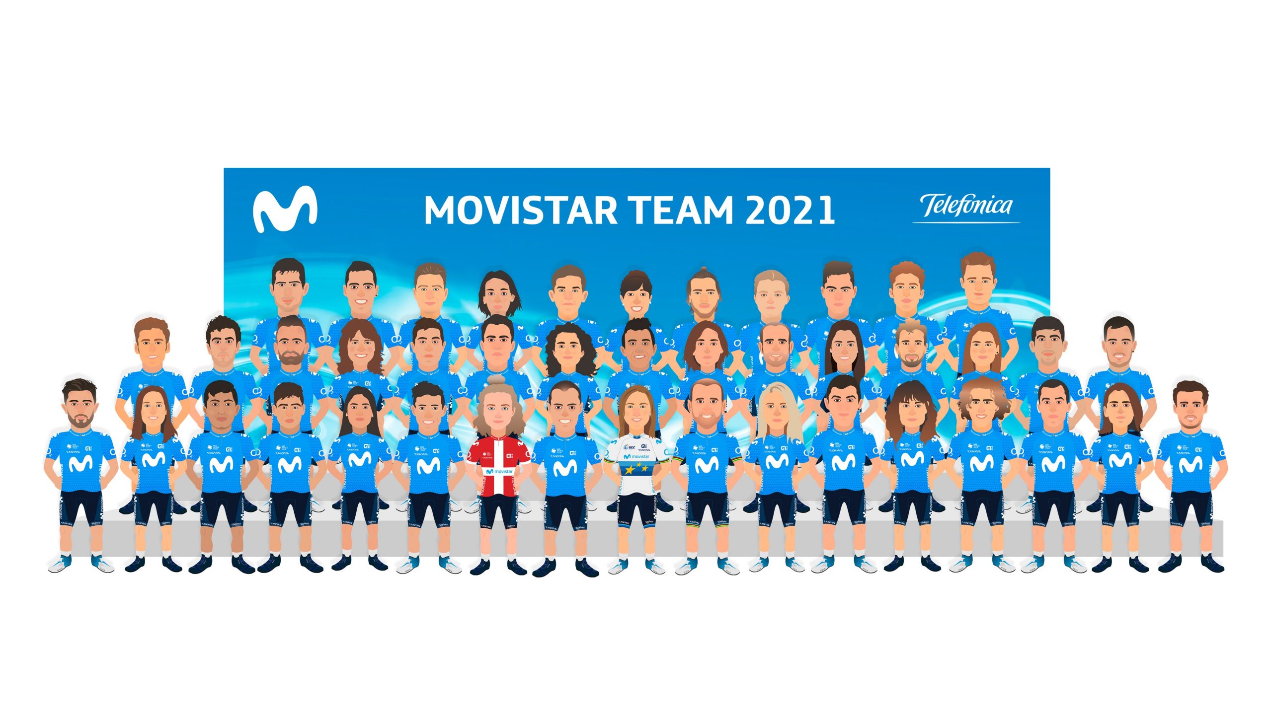 Comenzamos esta ‘ronda’ de novedades con el único equipo World Tour español. Movistar Team ha presentado a dos de sus grandes fichajes para 2021 como Sara Martín y Gonzalo Serrano. Además, hemos visto a Iván García Cortina con sus nuevos colores y, a través de una animación en forma de dibujos, podemos ver un esbozo de cómo le sienta el azul tanto a Miguel Ángel López como a Annemiek Van Vleuten.