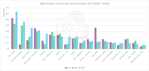 Valor ficticio en función de los puntos UCI 2018 – 2020