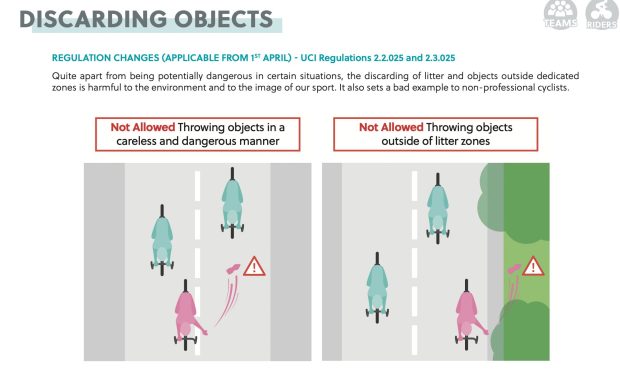 Como ya se habló hace unas semanas, el ciclista no podrá apoyarse sobre el manillar. En todo momento tendrá que tener las manos sobre las manetas. Además, queda prohibida y sujeto a sanción la posición bicho bola