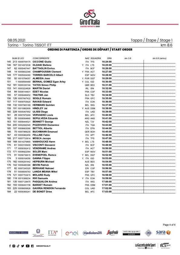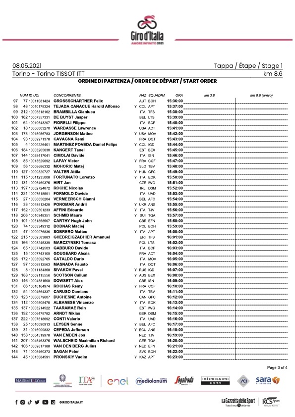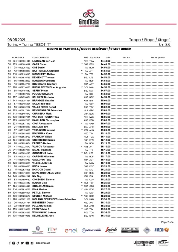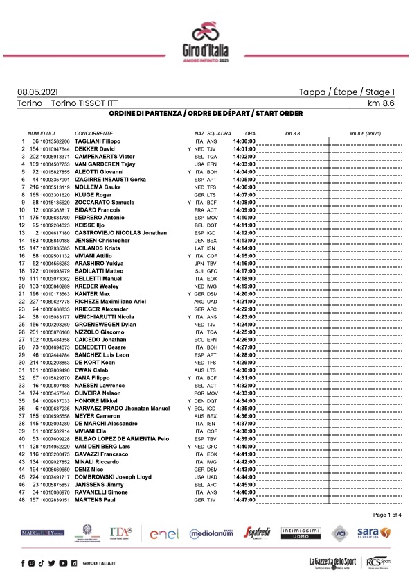 Horario y orden de salida etapa 1 Giro de Italia 2021