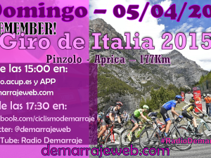 Este domingo 5 de abril reviviremos la etapa número 16 del Giro de Italia 2015 en Radio Demarraje desde las 15:00. El Giro de Italia 2015 ha pasado a la historia del . -