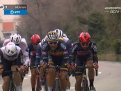 Momento curioso durante la quinta etapa de la París – Niza. La carrera estaba muy parada a causa del viento en contra. Ni siquiera había una escapada formada y todo .