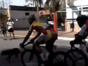 En la segunda etapa de la Vuelta a San Juan, un perro que atravesaba la calzada provocaba una caída entre los hombres de la fuga. Tres, de los ocho escapados, fueron los .